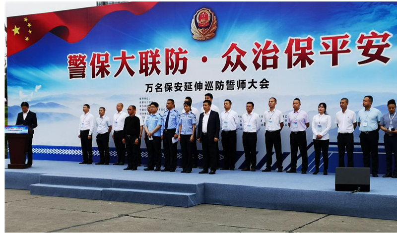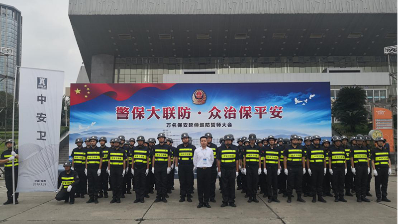 5月28日上午,在四川省公安厅治安总队、成都市公安局治安支队的指导下,公司组织60名精干的安保人员参加了在省体育馆东门广场举办的“‘警保大联防●众治保平安’万名保安延伸巡防誓师大会”。