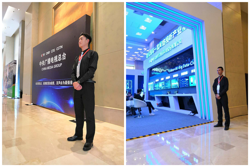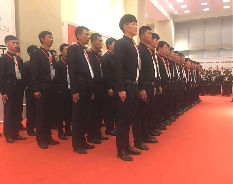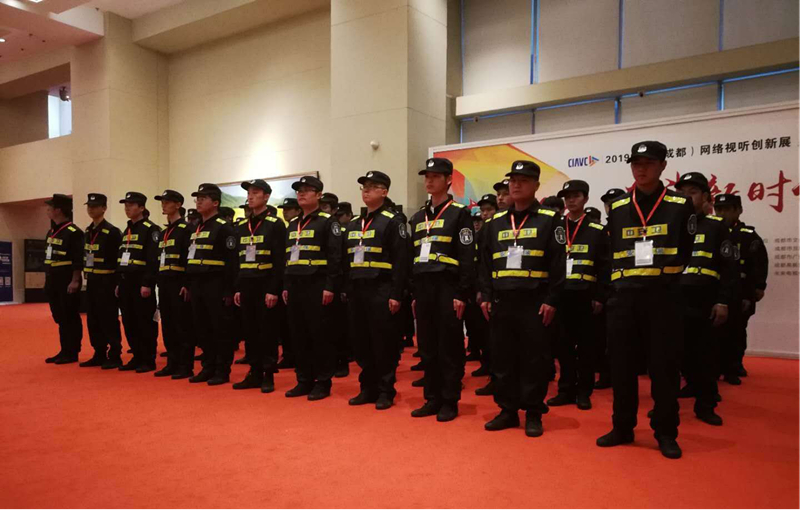 “黑衣护卫”们来自四川中安卫保安服务有限公司,驻守在网络视听大会的各个角落。比如上图中的“西装护卫”就守卫在网络视听大会的各个展馆前;而身着标志性服装的安保人员就守卫在各个通道口,以备应对突发状况。悄悄告诉大家,四川中安卫保安服务有限公司每天都有180人的队伍出现在此次大会上,为大会提供及时、有效、周到的安全护卫服务。