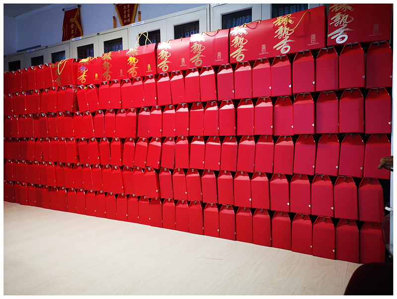 且放宽心。公司领导们早就考虑到了。这不,采购了好多漂亮的端午礼盒,都快砌成了一道“红墙”。