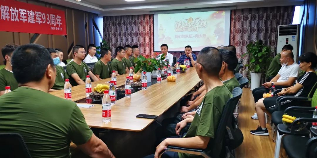 在《咱当兵的人》激昂的歌声中,公司庆祝“八一”座谈会拉开了序幕。首先董事长汪海升做了热情洋溢的讲话,他说:“今天和咱们和公司退伍老兵共同庆祝八一建军节,一是和为了缅怀革命先烈,二是要激励全体员工发扬军人一不怕苦二不怕死的精神”。董事长要求每个员工做人讲情怀、做事讲担当,共同推动中安卫发展壮大。